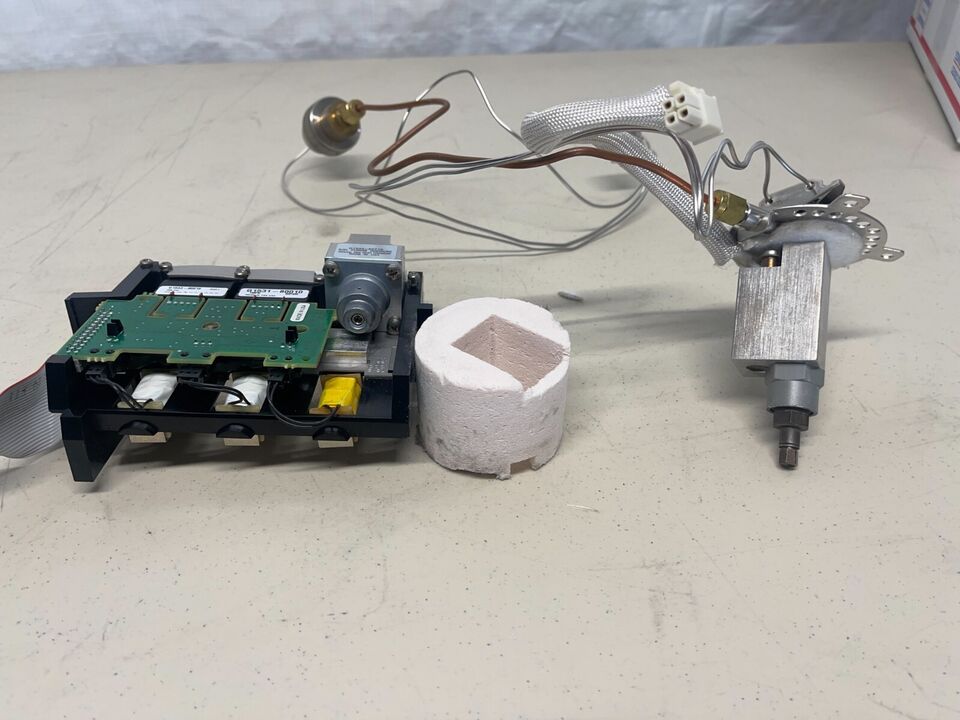 A disassembled view of a Swagelok analytical gas purifier.