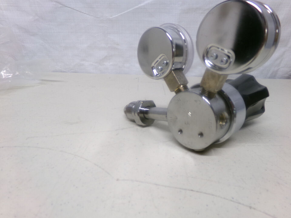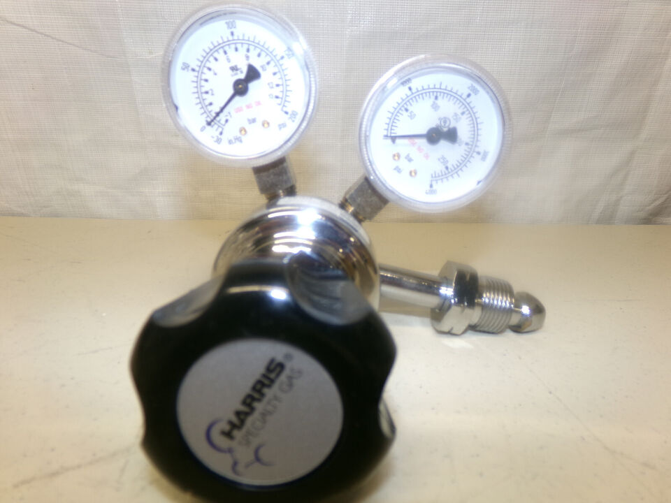 Specialty gas regulator with two gauges.